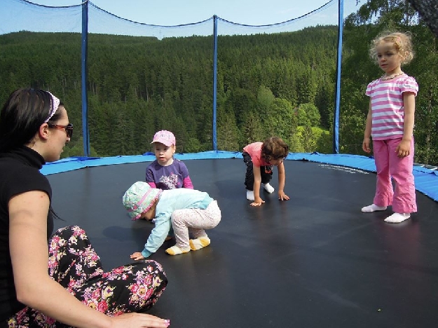- 2 x trampolína a dětské hřiště s prolézačkami ( v zimě skipark)